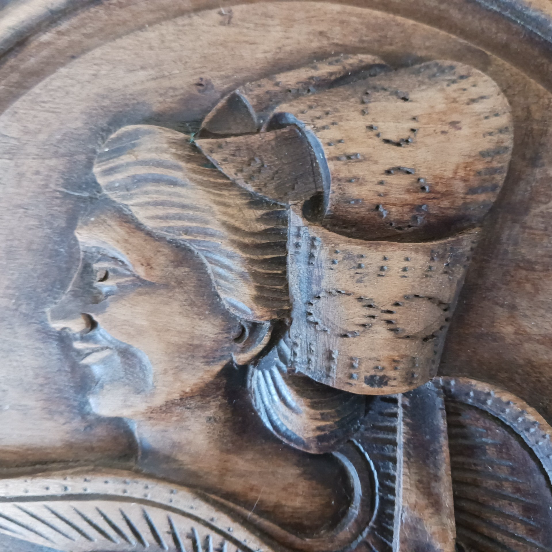 2 assiettes bretonnes anciennes, en bois sculpté