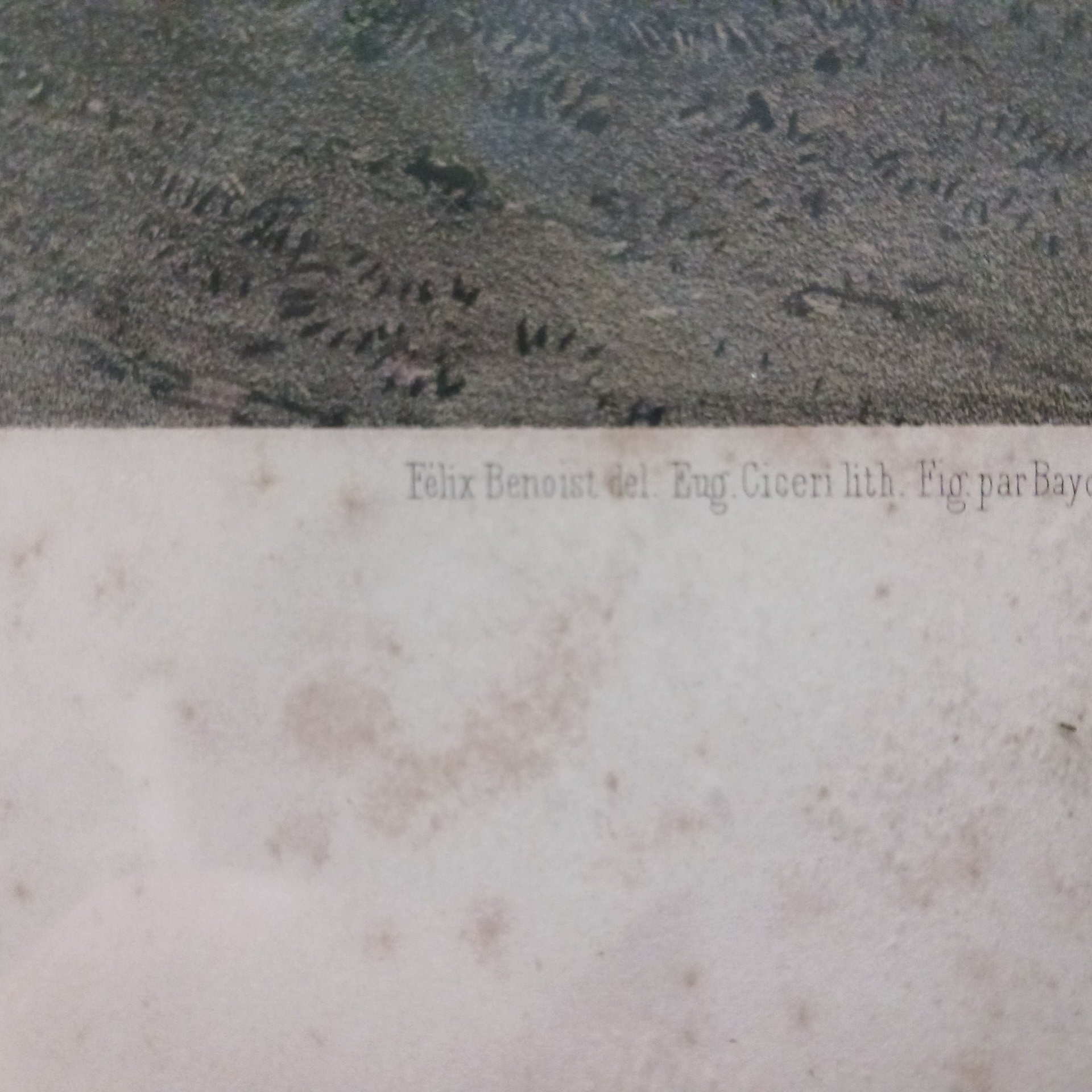 Reproduction d'une lithographie de Félix Benoist, représentant l'Eglise de Kergrist Moëllou ,près de Rostrenen dans les Côtes d'Armor . En bon état , tâches d'humidité . Encadrée, 33 cm x 41 cm avec le cadre .